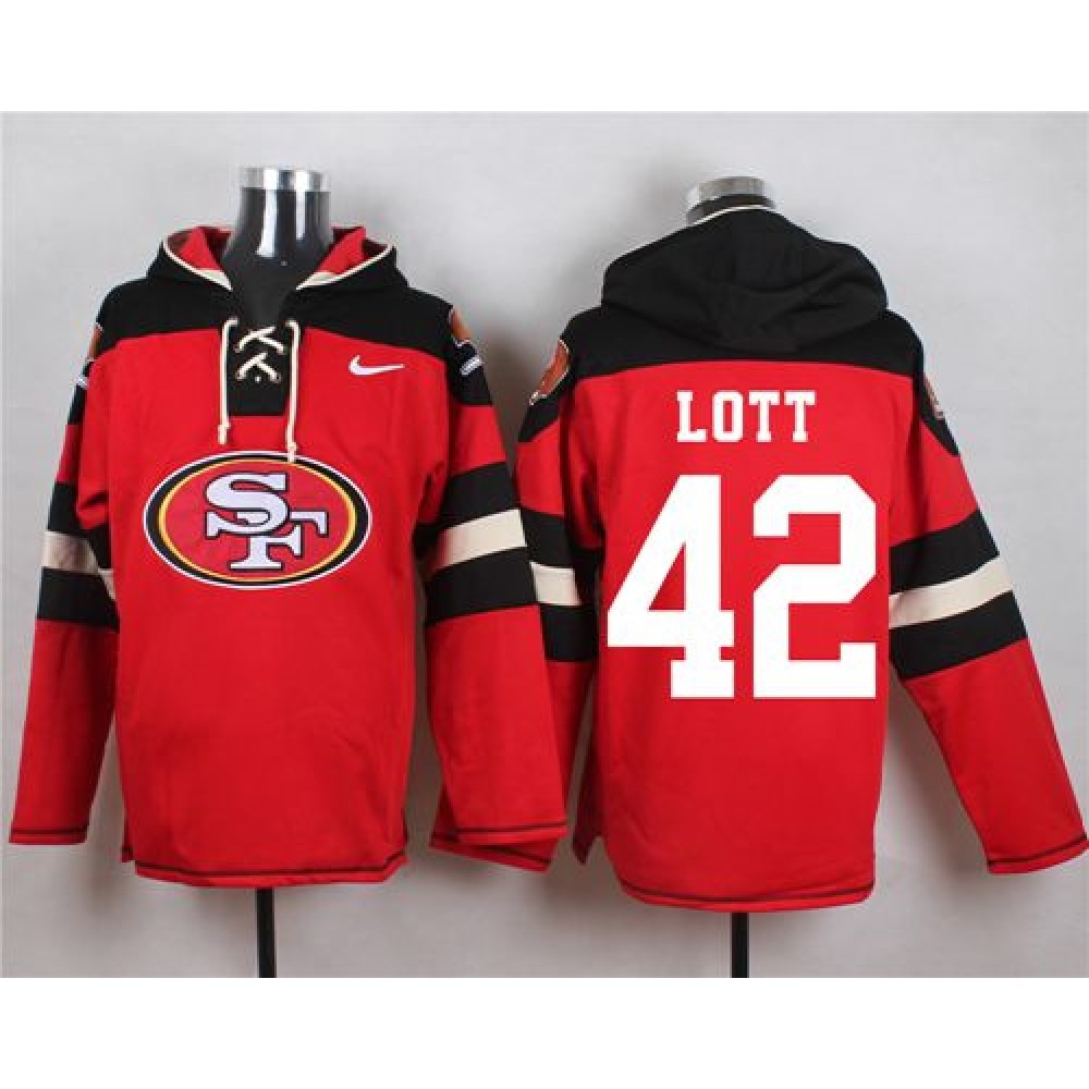 49ers #42 Ronnie Lott Red Player Pullover NFL Hoodie