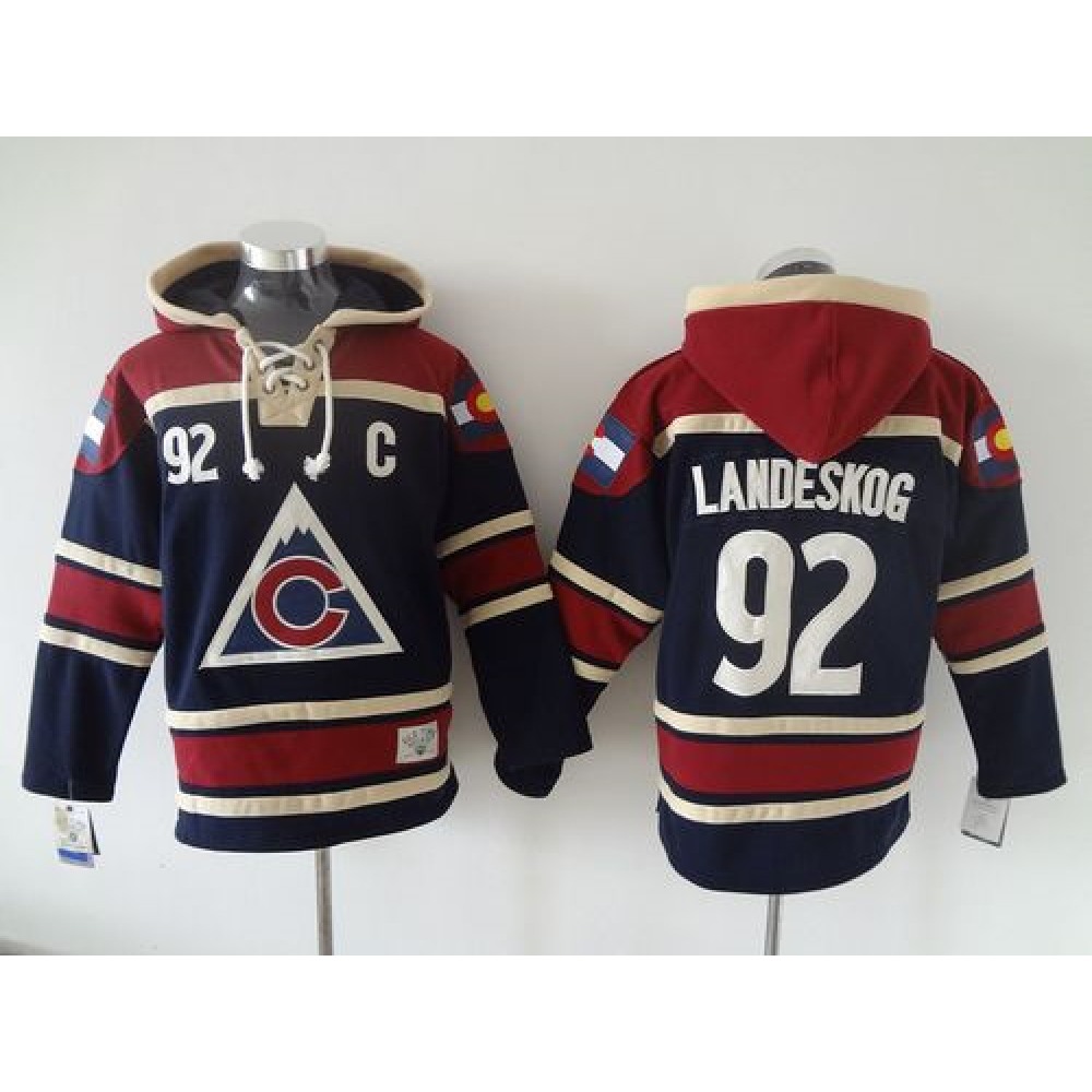 Avalanche #92 Gabriel Landeskog Navy Blue Sawyer Hooded Sweatshirt Stitched NHL Jersey