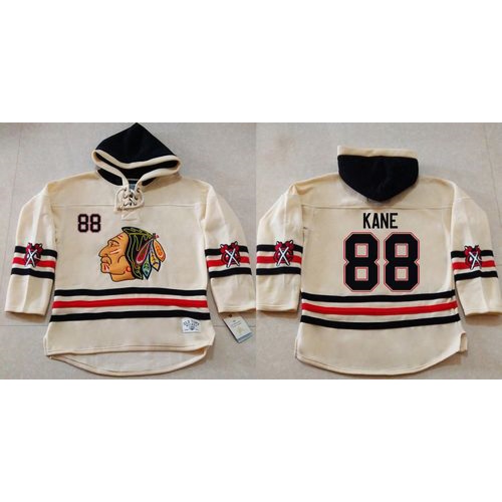 Blackhawks #88 Patrick Kane Cream Heavyweight Pullover Hoodie Stitched NHL Jersey