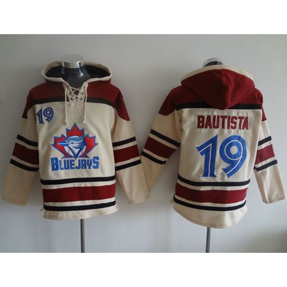 Blue Jays #19 Jose Bautista Cream Sawyer Hooded Sweatshirt MLB Hoodie