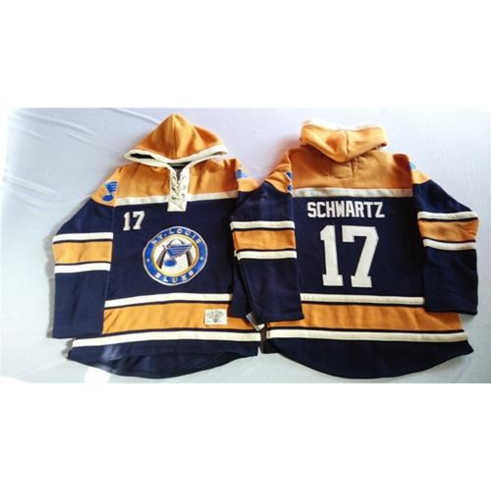 Blues #17 Jaden Schwartz Navy Blue/Gold Sawyer Hooded Sweatshirt Stitched NHL Jersey