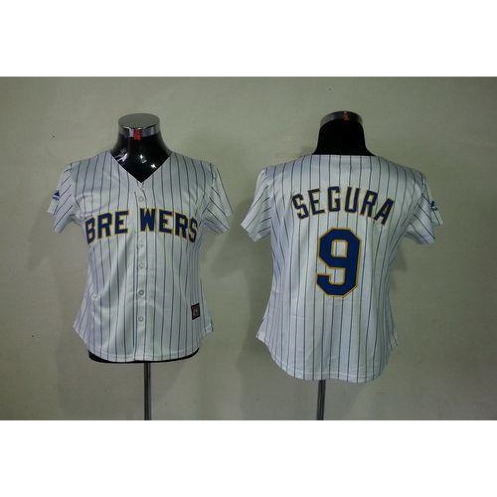 Brewers #9 Jean Segura White(Blue Strip) Women's Fashion Stitched MLB Jersey