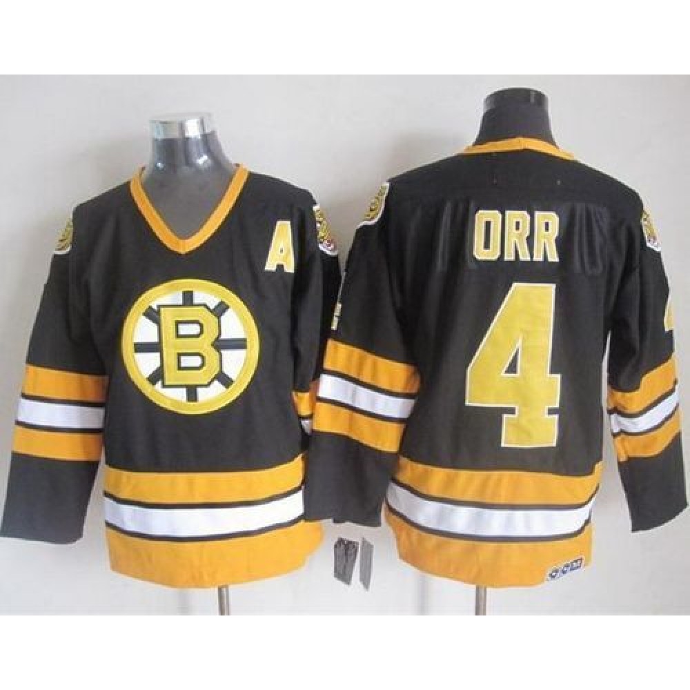 Bruins #4 Bobby Orr Black/Yellow CCM Throwback Stitched NHL Jersey