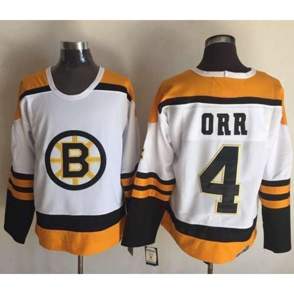 Bruins #4 Bobby Orr Yellow/White CCM Throwback Stitched NHL Jersey