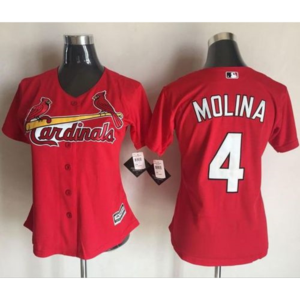 Cardinals #4 Yadier Molina Red Women's Alternate Stitched MLB Jersey