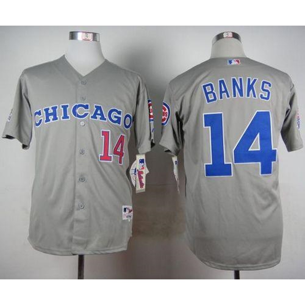 Cubs #14 Ernie Banks Grey 1990 Turn Back The Clock Stitched MLB Jersey