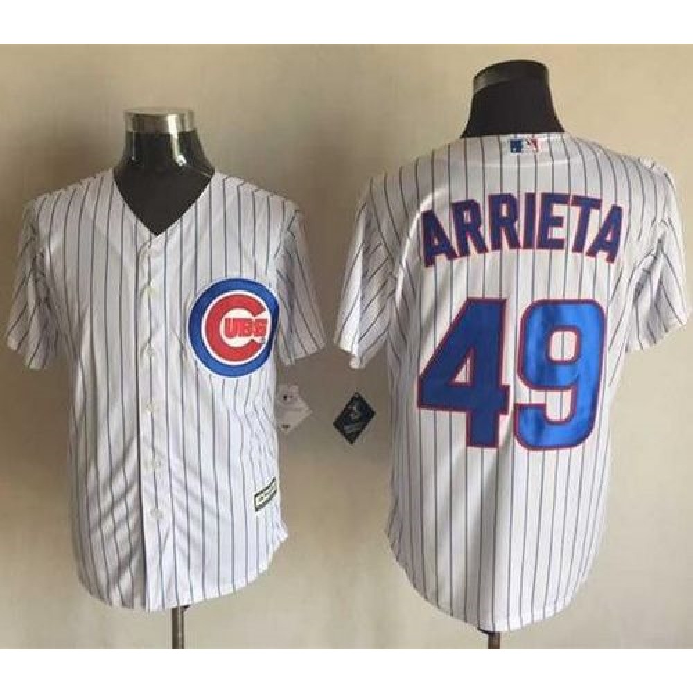 Cubs #49 Jake Arrieta White Strip New Cool Base Stitched MLB Jersey