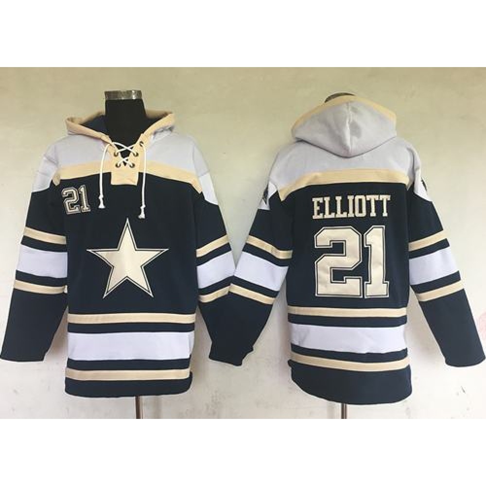 Dallas Cowboys #21 Ezekiel Elliott Navy Blue Sawyer Hoodie Sweatshirt NFL Hoodie