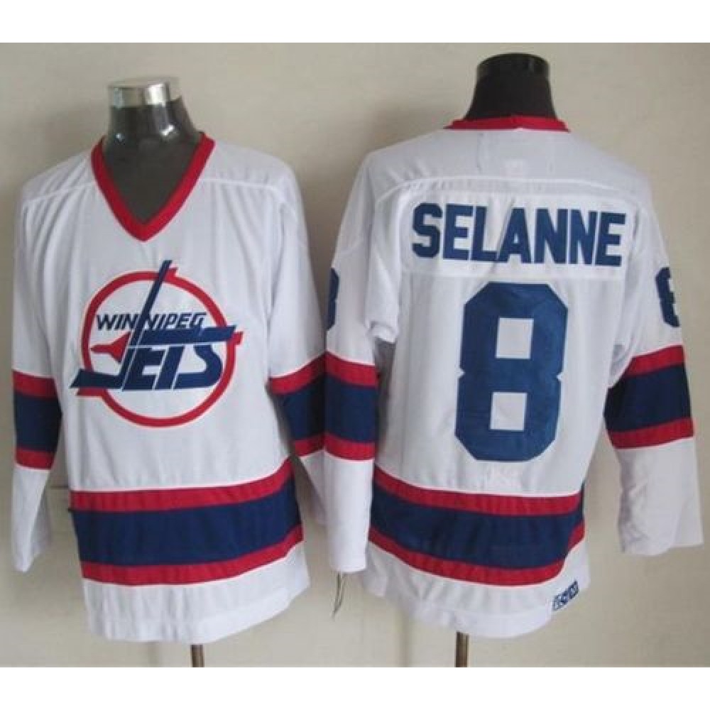 Jets #8 Teemu Selanne White/Blue CCM Throwback Stitched NHL Jersey