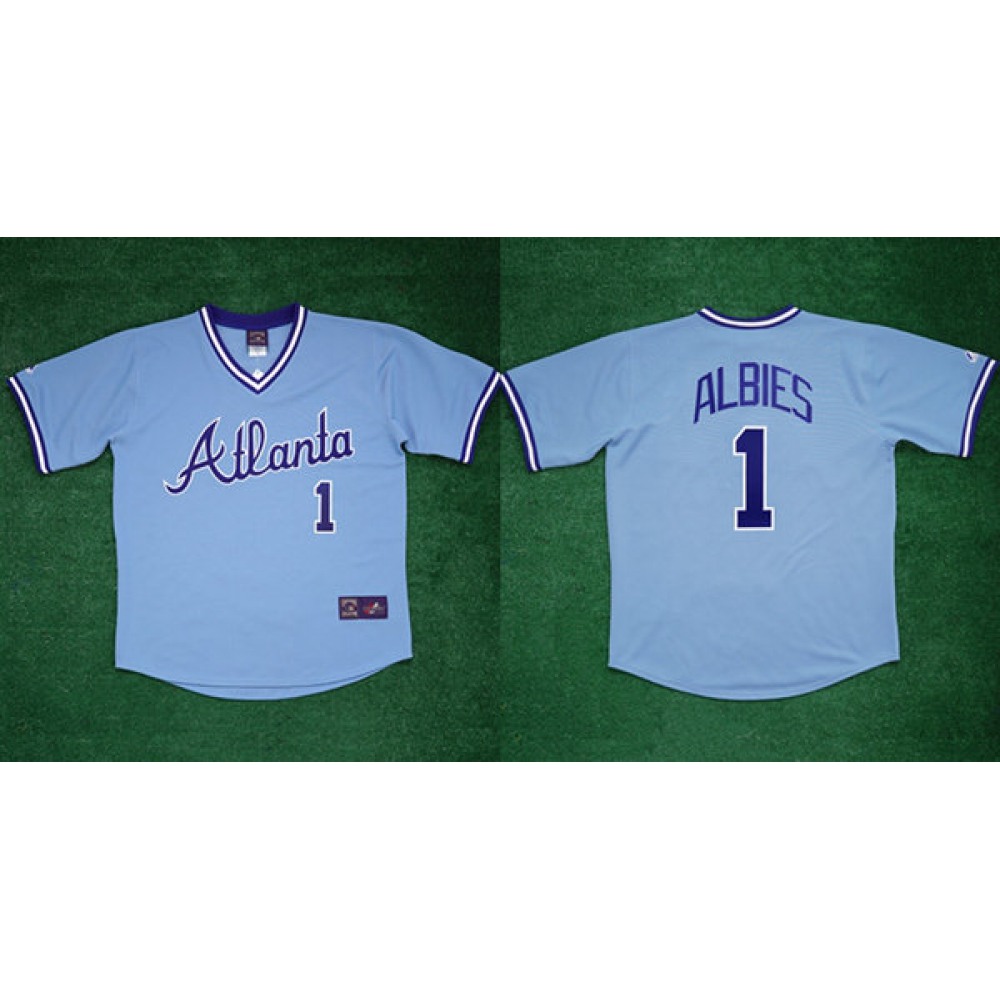 Men's Atlanta Braves #1 Ozzie Albies 1982 White Cool Base Stitched Baseball Jersey