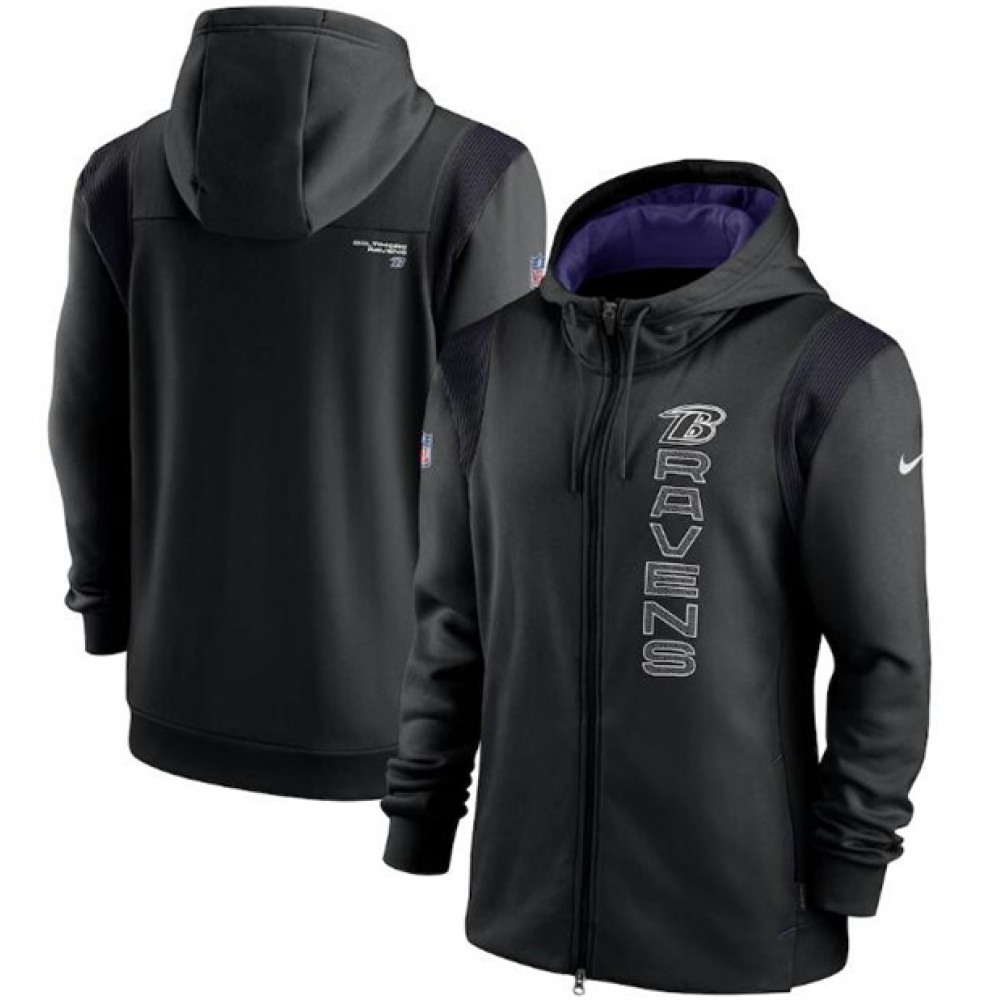 Men's Baltimore Ravens 2021 Black Sideline Team Performance Full-Zip Hoodie
