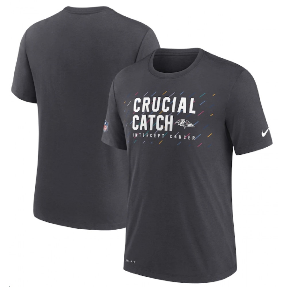 Men's Baltimore Ravens Charcoal 2021 Crucial Catch Performance T-Shirt