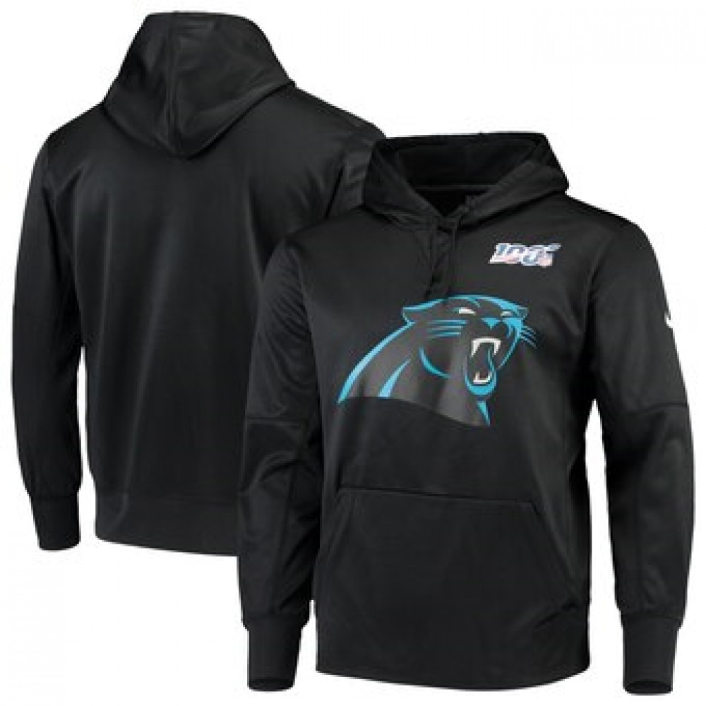 Men's Carolina Panthers Black 100th Season Primary Logo Circuit Performance Pullover Hoodie