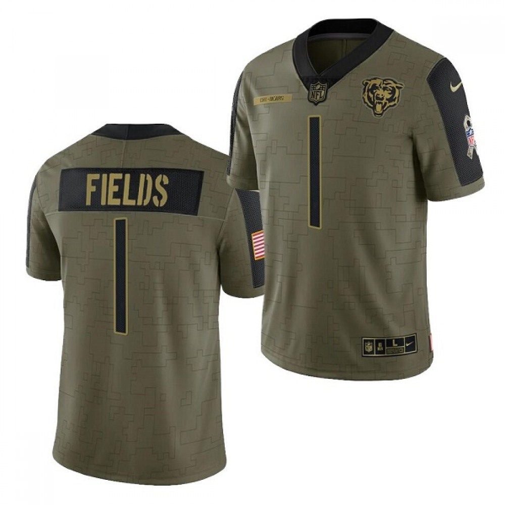 Men's Chicago Bears #1 Justin Fields 2021 Olive Salute To Service Limited Stitched Jersey