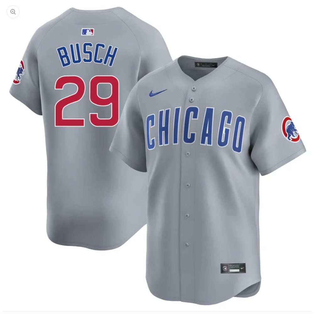 Men's Chicago Cubs #29 Michael Busch Gray Cool Base Stitched Baseball Jersey