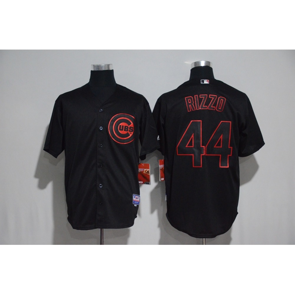 Men's Chicago Cubs #44 Anthony Rizzo Black Strip Stitched MLB Jersey