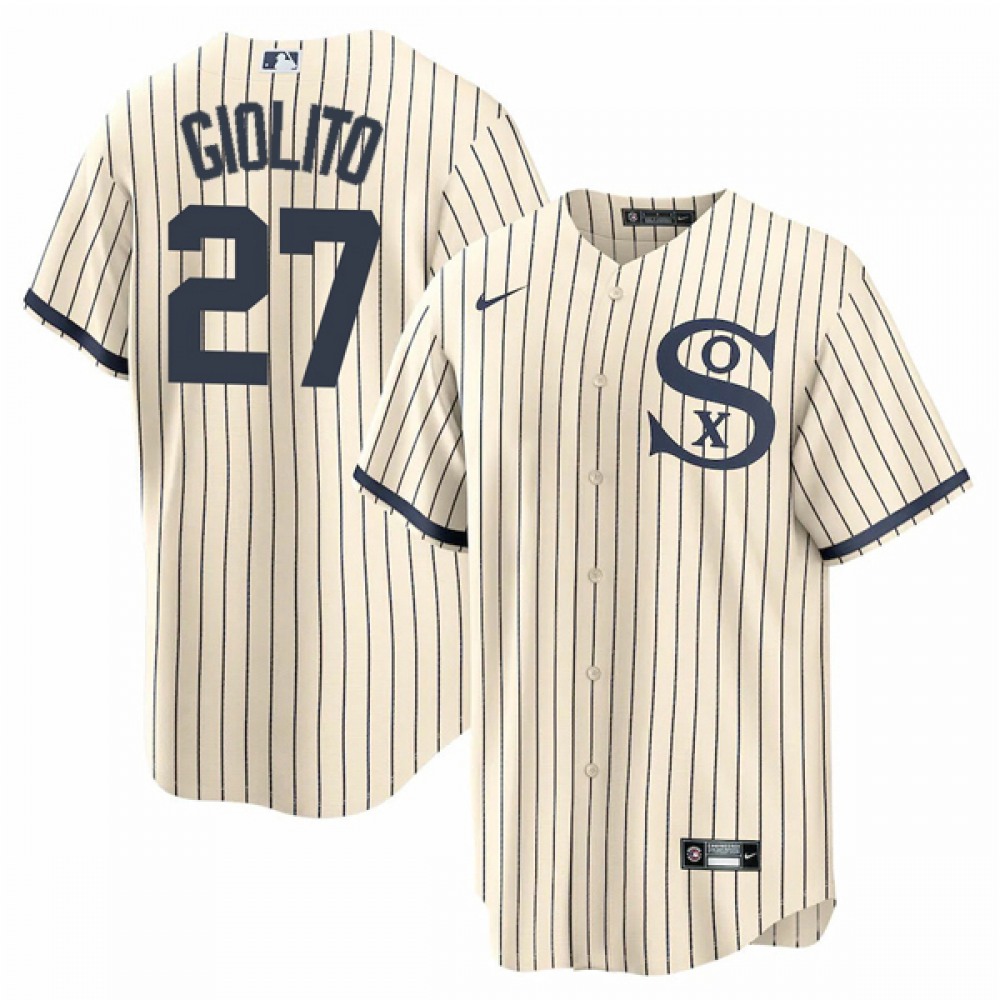 Men's Chicago White Sox #27 Lucas Giolito 2021 Cream/Navy Field of Dreams Flex Base Stitched Jersey