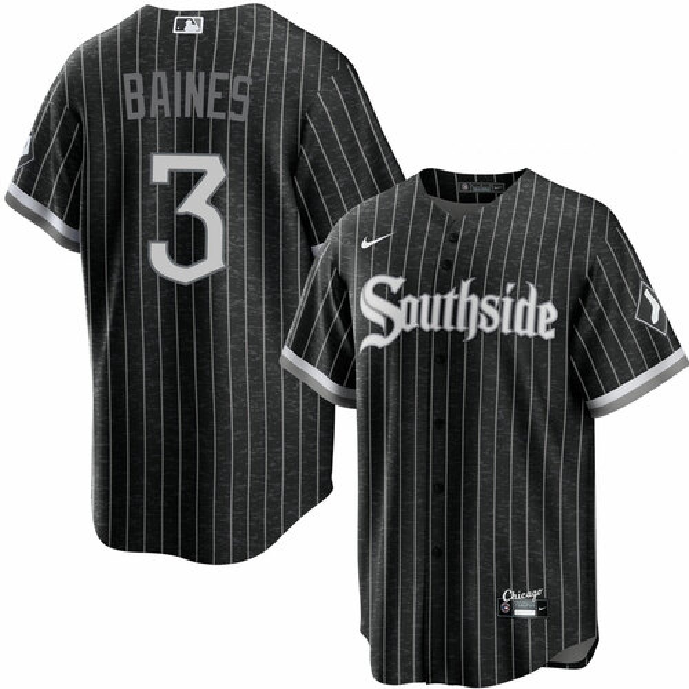 Men's Chicago White Sox #3 Harold Baines Black 2021 City Connect Cool Base Stitched Jersey