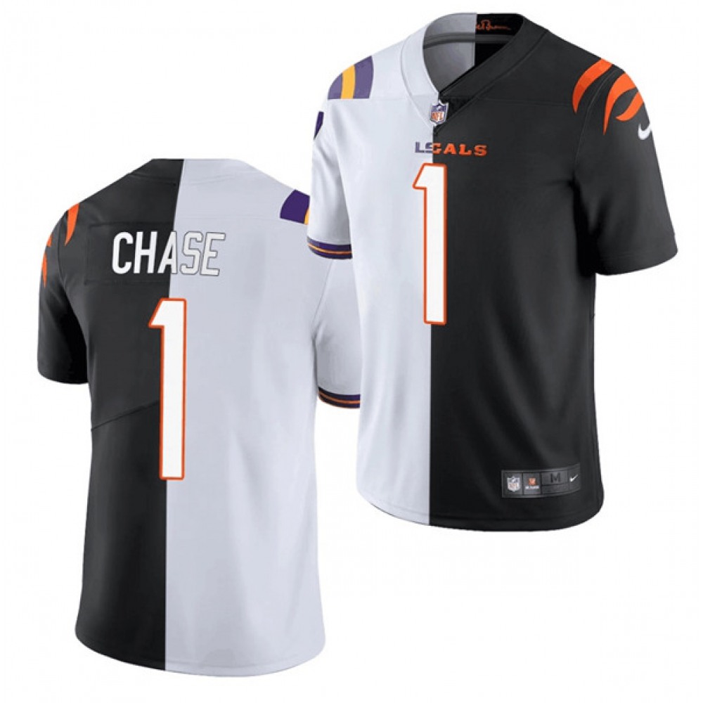Men's Cincinnati Bengals #1 Ja'Marr Chase 2021 Black/White Split Stitched NFL Jersey