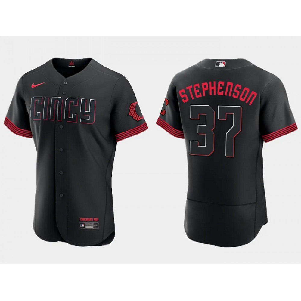 Men's Cincinnati Reds #37 Tyler Stephenson Black 2023 City Connect Flex Base Stitched Jersey
