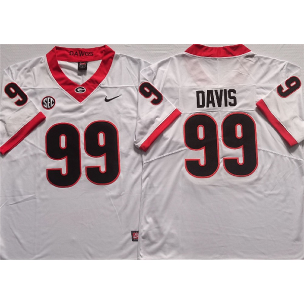 Men's Georgia Bulldogs #99 DAVIS White College Football Stitched Jersey