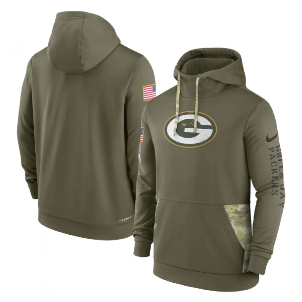 Men's Green Bay Packers 2022 Olive Salute to Service Therma Performance Pullover Hoodie