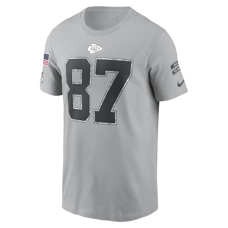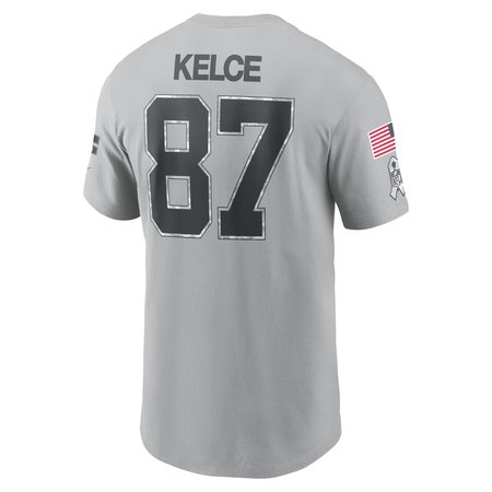 Men's Kansas City Chiefs #87 Travis Kelce Gray 2024 Salute To Service Name & Number T-Shirt