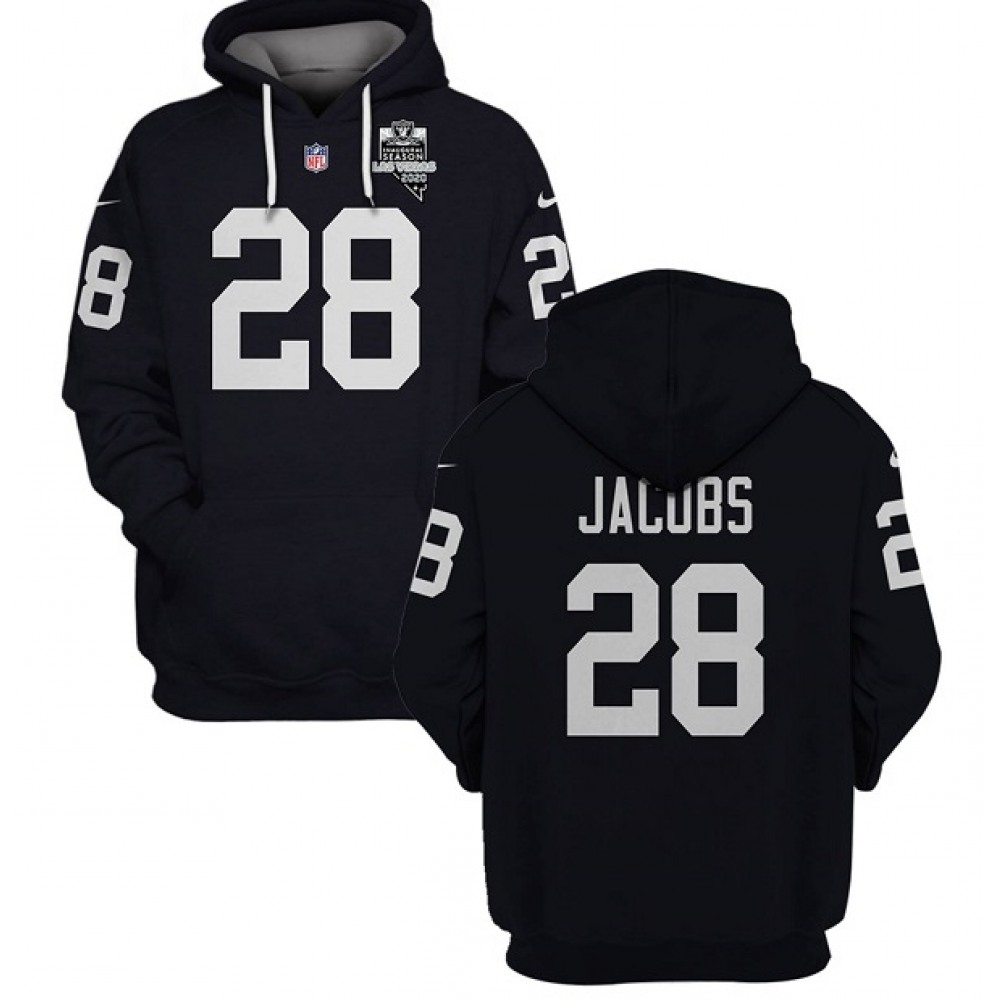 Men's Las Vegas Raiders #28 Josh Jacobs 2021 Inaugural Patch Black Pullover Hoodie