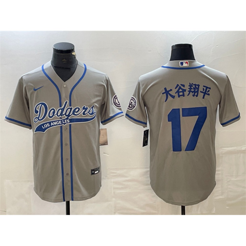 Men's Los Angeles Dodgers #17 Shohei Ohtani Grey Cool Base With Patch Stitched Baseball Jersey
