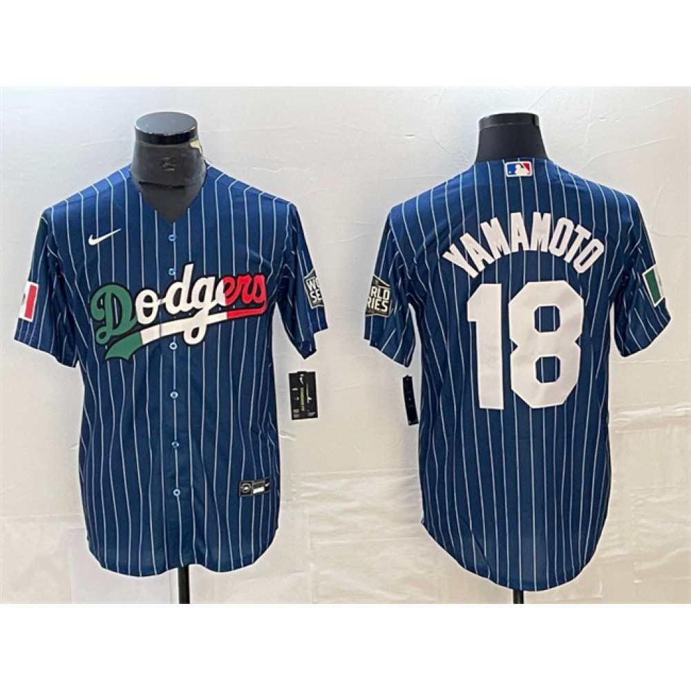 Men's Los Angeles Dodgers #18 Yoshinobu Yamamoto Navy Cool Base With Patch Stitched Baseball Jersey