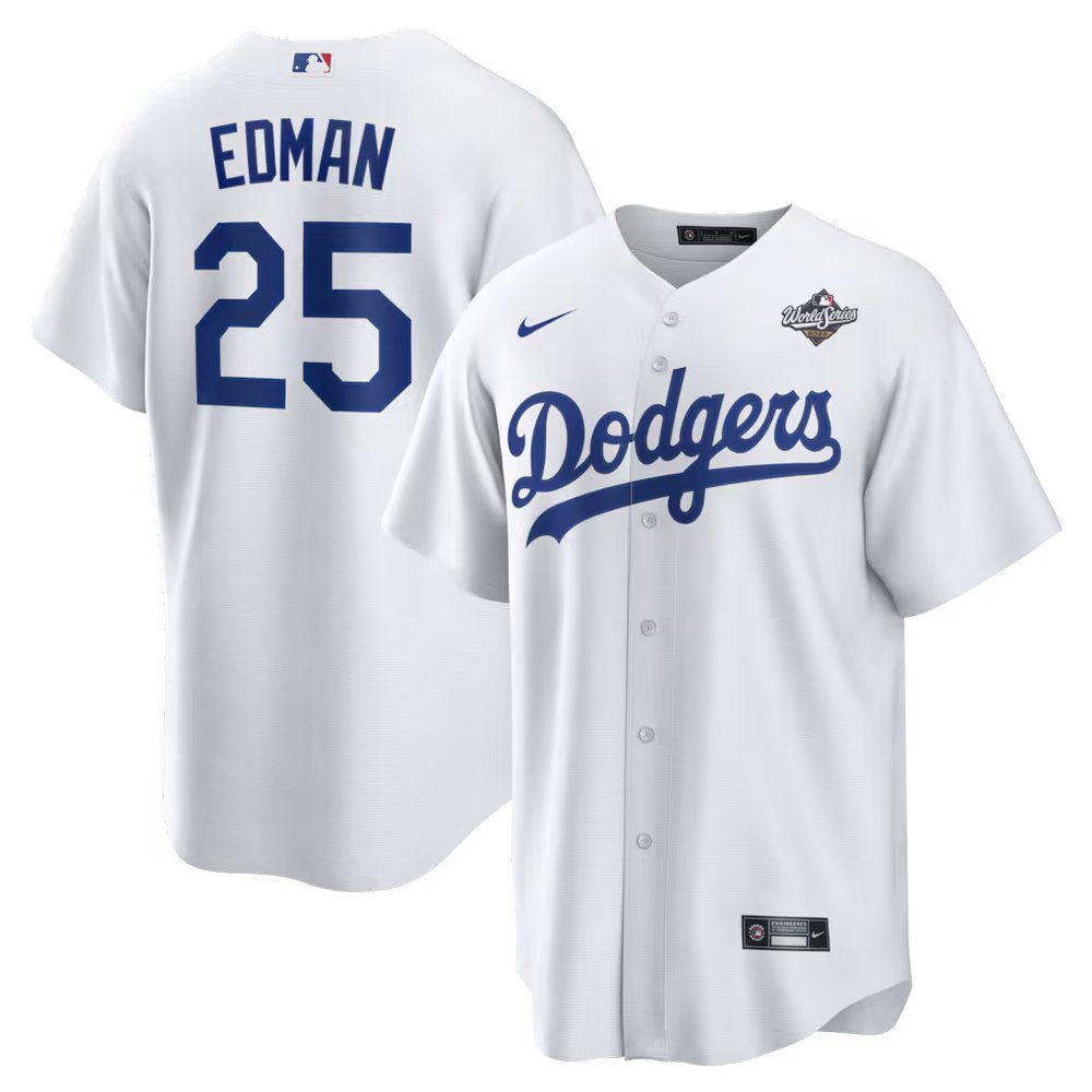 Men's Los Angeles Dodgers #25 Tommy Edman Nike White 2025 World Series Home Replica Player Jersey