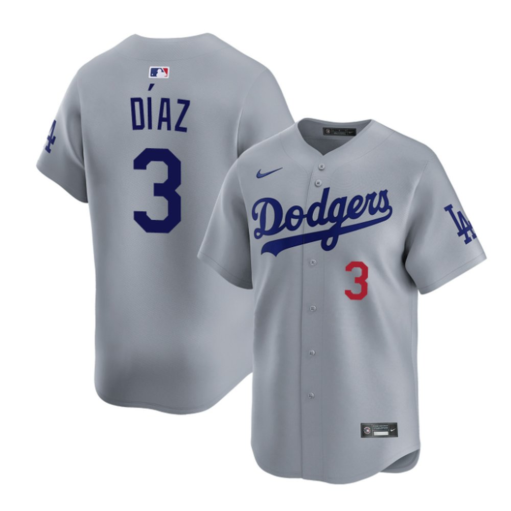 Men's Los Angeles Dodgers #3 Edwin Diaz Nike Gray Home Replica Jersey