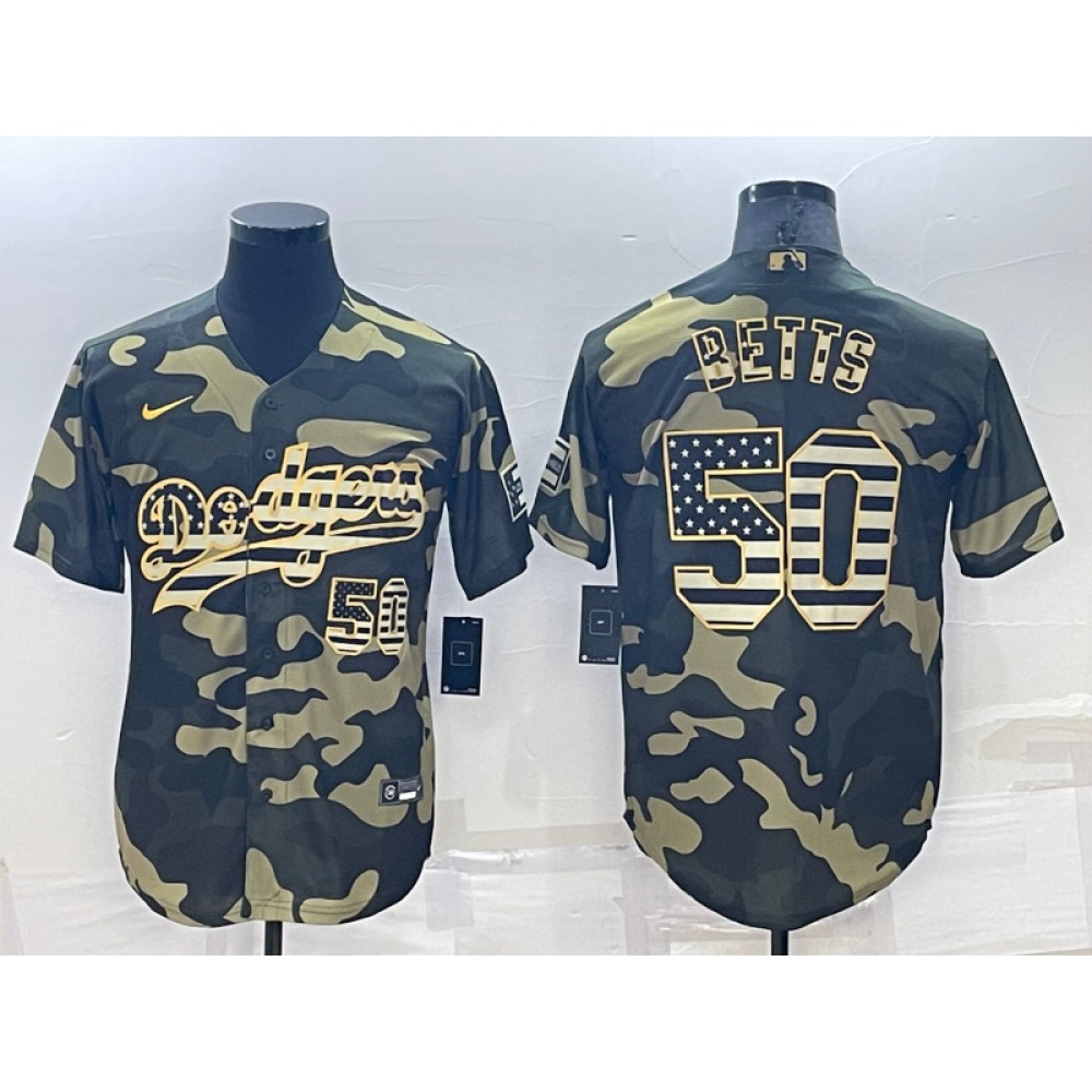Men's Los Angeles Dodgers #50 Mookie Betts Olive Cool Base Stitched Baseball Jersey