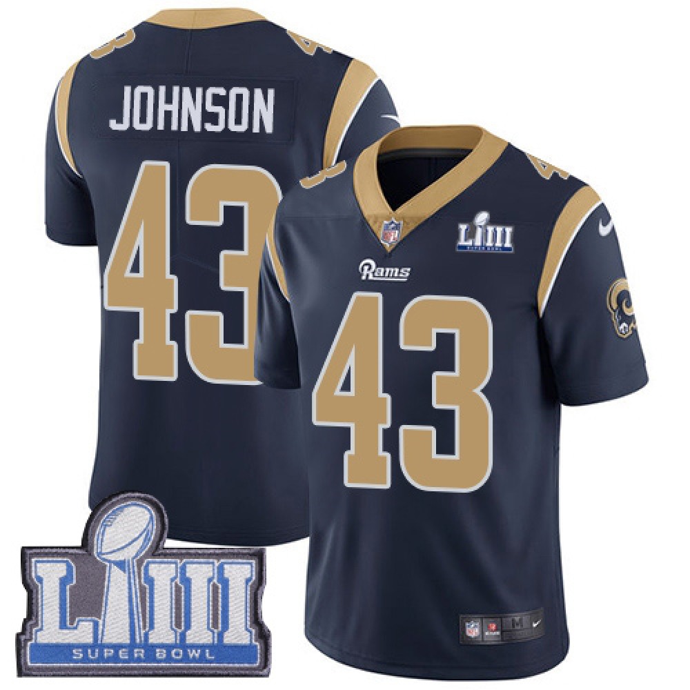 Men's Los Angeles Rams #43 John Johnson Navy Blue Super Bowl LIII Vapor Untouchable Limited Stitched NFL Jersey