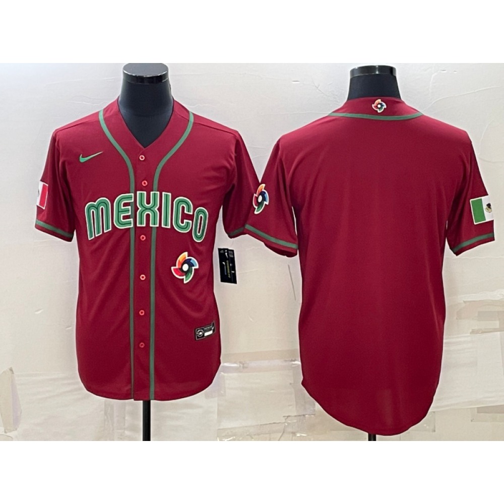 Men's Mexico Baseball Blank 2023 Red World Baseball With Patch Classic Stitched Jersey