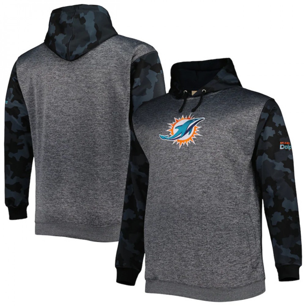 Men's Miami Dolphins Heather Charcoal Big & Tall Camo Pullover Hoodie