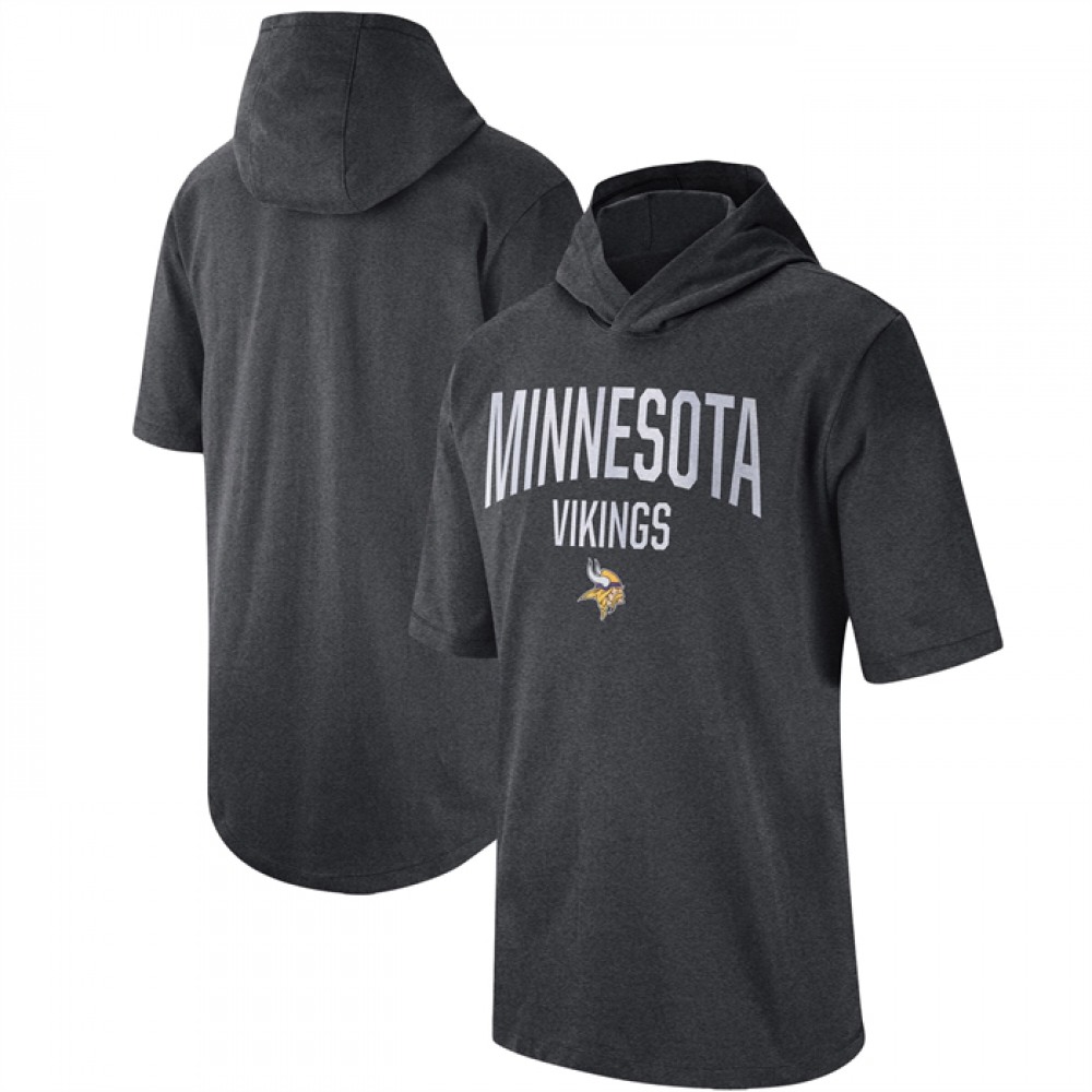 Men's Minnesota Vikings Heathered Charcoal Sideline Training Hoodie Performance T-Shirt