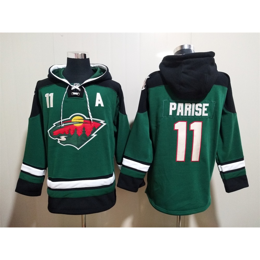 Men's Minnesota Wild #11 Zach Parise Green Ageless Must-Have Lace-Up Pullover Hoodie