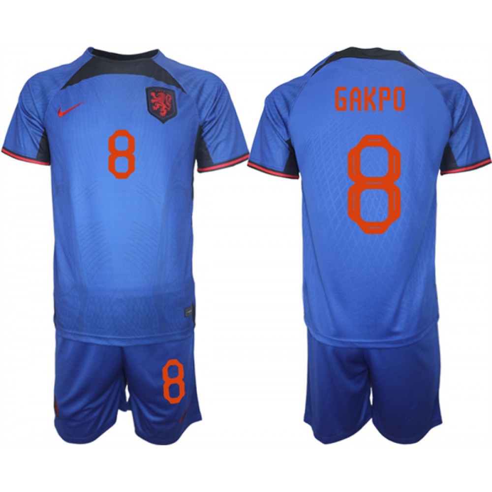 Men's Netherlands #8 Gakpo Royal Away Soccer Jersey Suit