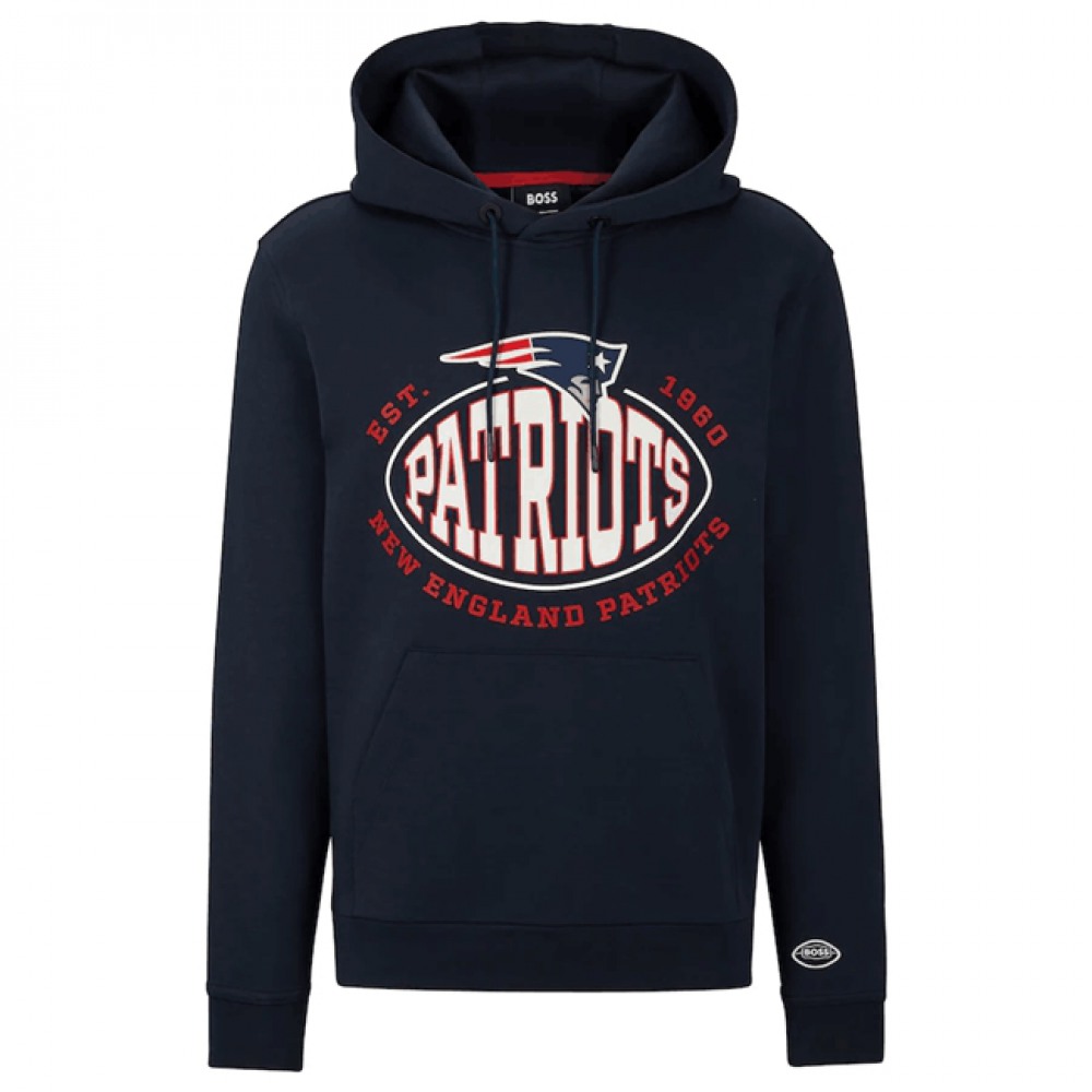 Men's New England Patriots Navy BOSS X Touchback Pullover Hoodie