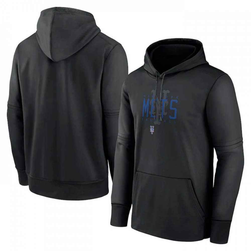 Men's New York Mets Black Pregame Performance Pullover Hoodie