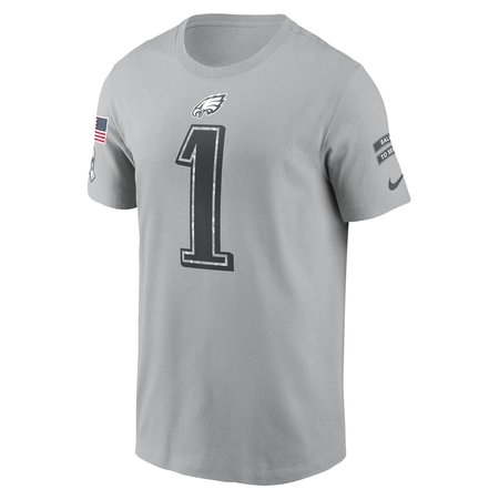 Men's Philadelphia Eagles #1 Jalen Hurts Gray 2024 Salute To Service Name & Number T-Shirt
