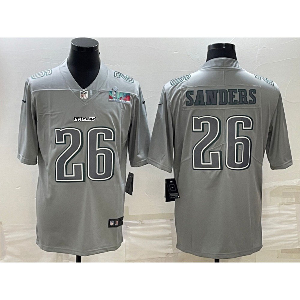 Men's Philadelphia Eagles #26 Miles Sanders Gray Super Bowl LVII Patch Atmosphere Fashion Stitched Jersey