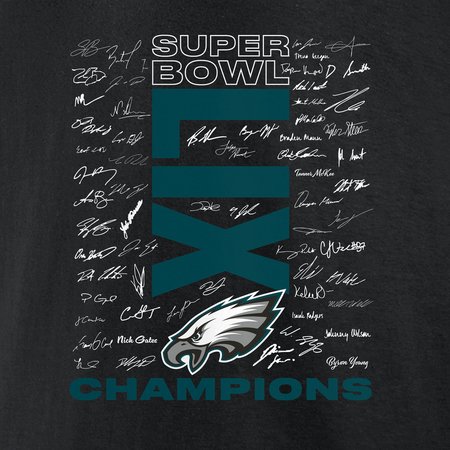 Men's Philadelphia Eagles Black Super Bowl LIX Champions Roster Autograph Signing T-Shirt