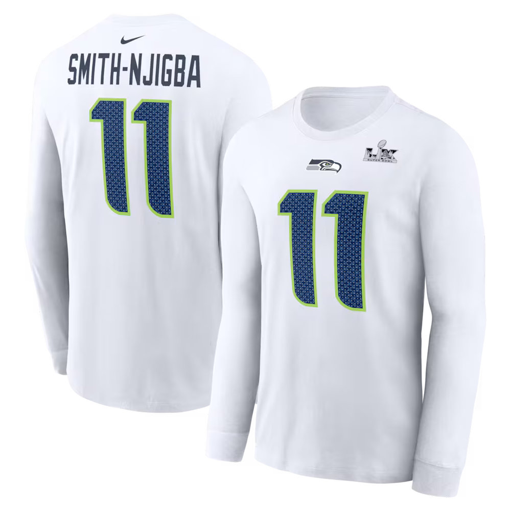 Men's Seattle Seahawks #11 Jaxon Smith-Njigba Nike White Super Bowl LX Champions Long Sleeve T-Shirt