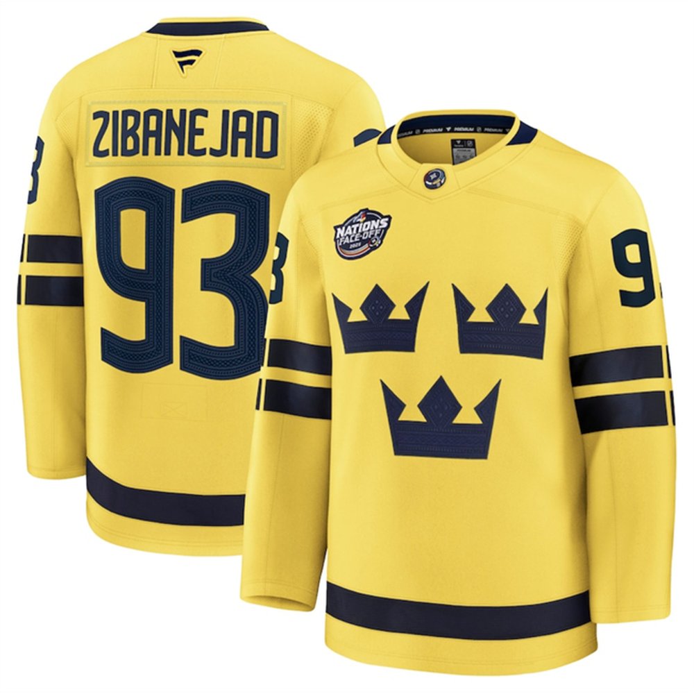 Men's Sweden #93 Mika Zibanejad Yellow 2025 4 Nations Face-Off Premium Stitched Jersey
