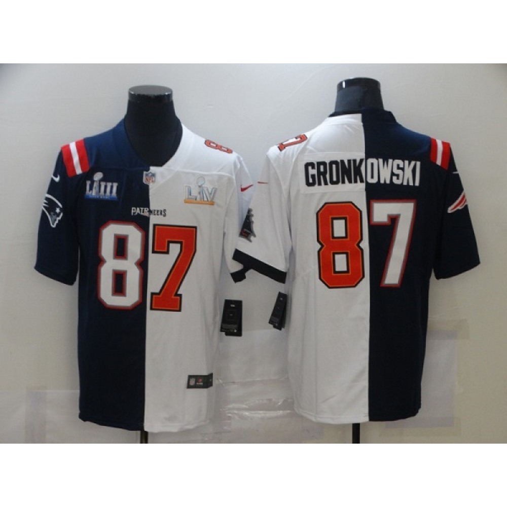 Men's Tampa Bay Buccaneers #87 Rob Gronkowski White Navy Super Bowl Split GOAT Stitched Jersey