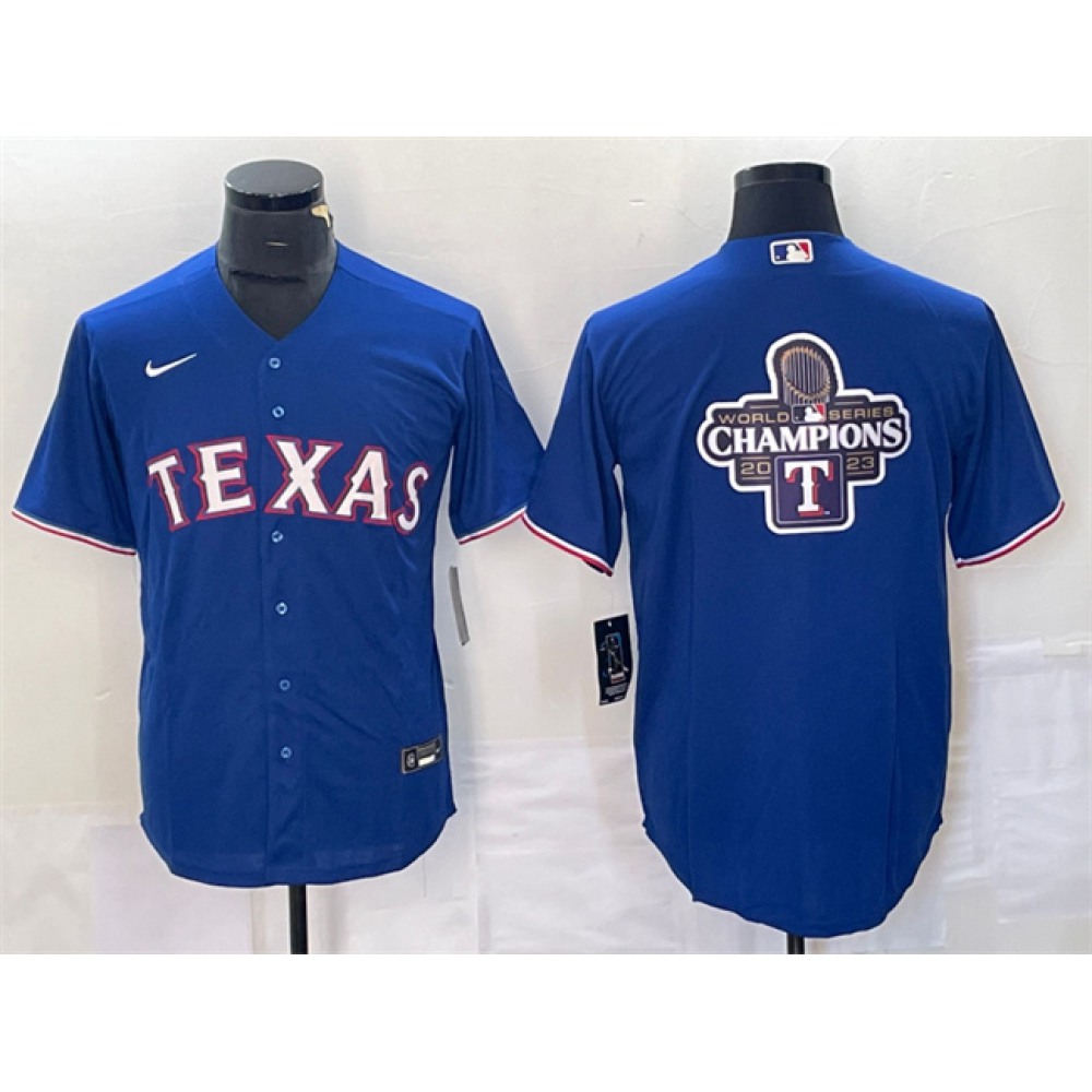 Men's Texas Rangers Royal 2023 World Series Champions Big Logo Cool Base Stitched Baseball Jersey