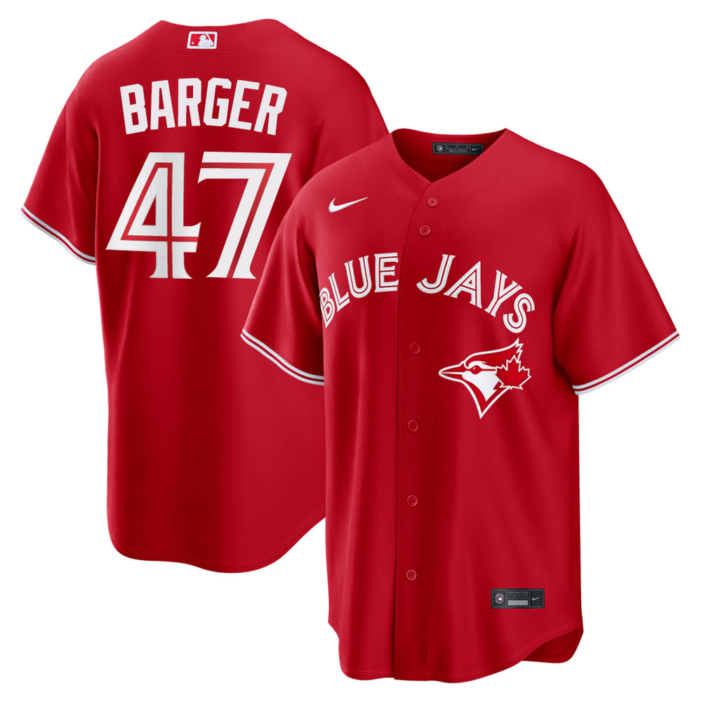 Men's Toronto Blue Jays #47 Addison Barger Nike Red Canada Day Replica Jersey