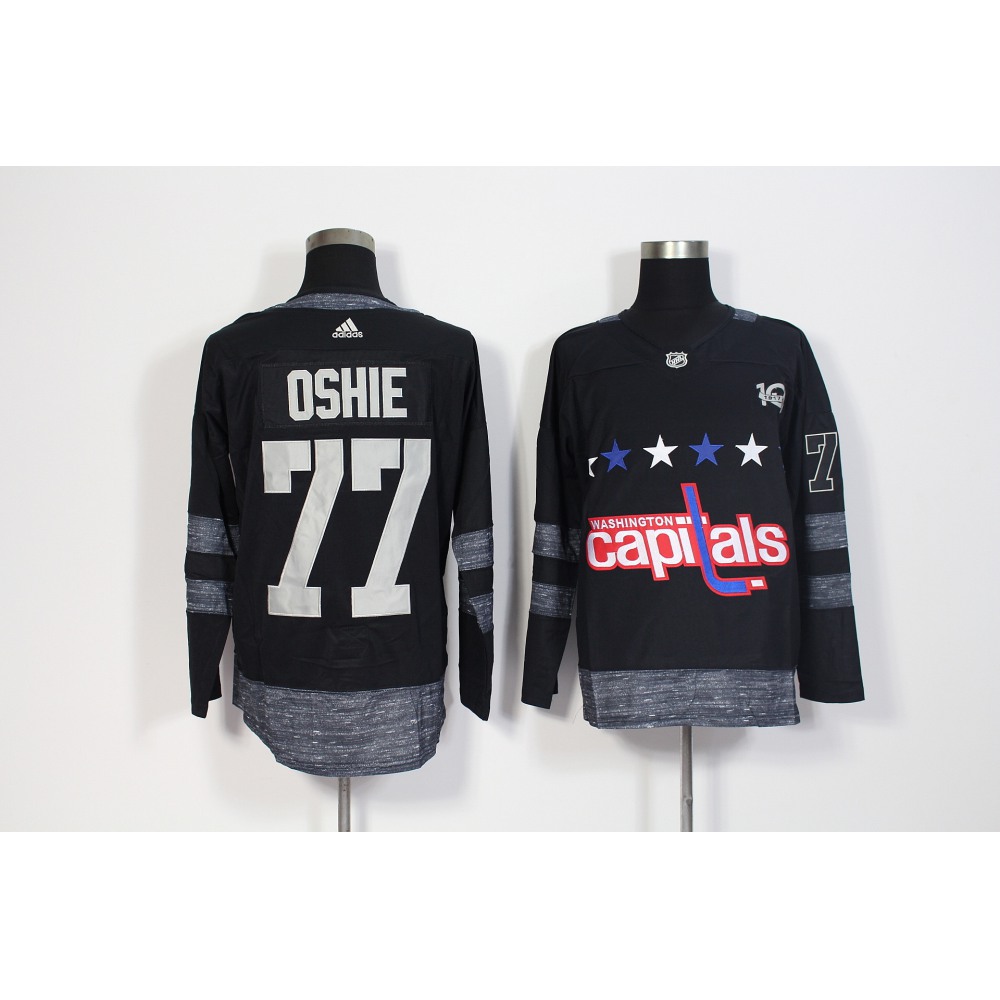 Men's Washington Capitals #77 T.J Oshie Black 1917-2017 100th Anniversary Stitched NHL Jersey